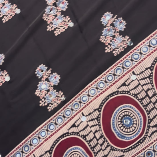 Black Jalebi Ajrakh Mirror Saree (Dispatch 5th, February)