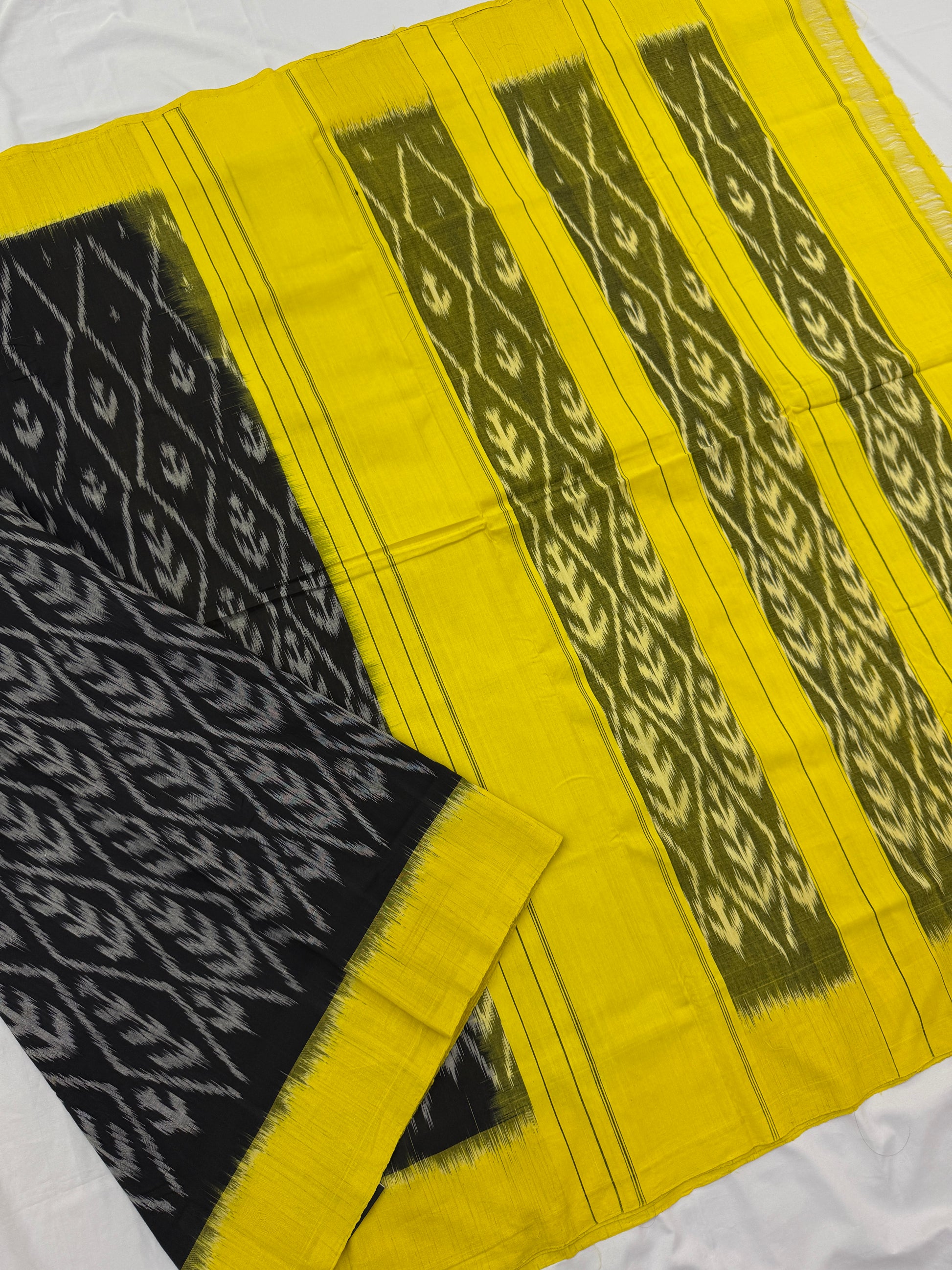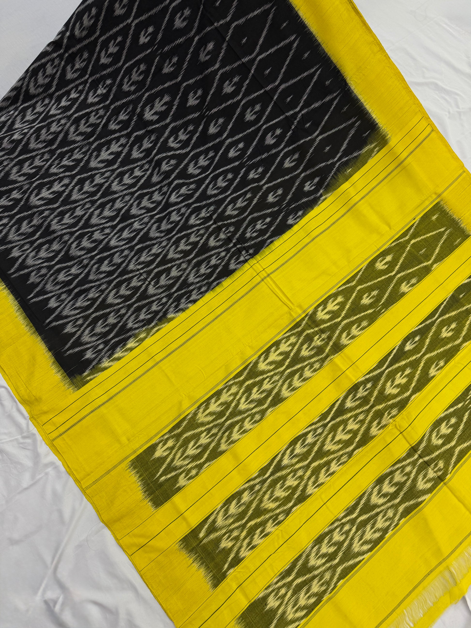 Elegant single Ikat saree handwoven by skilled artisans using traditional techniques. Showcasing distinct patterns and vibrant colors, this saree is a perfect blend of heritage and style.