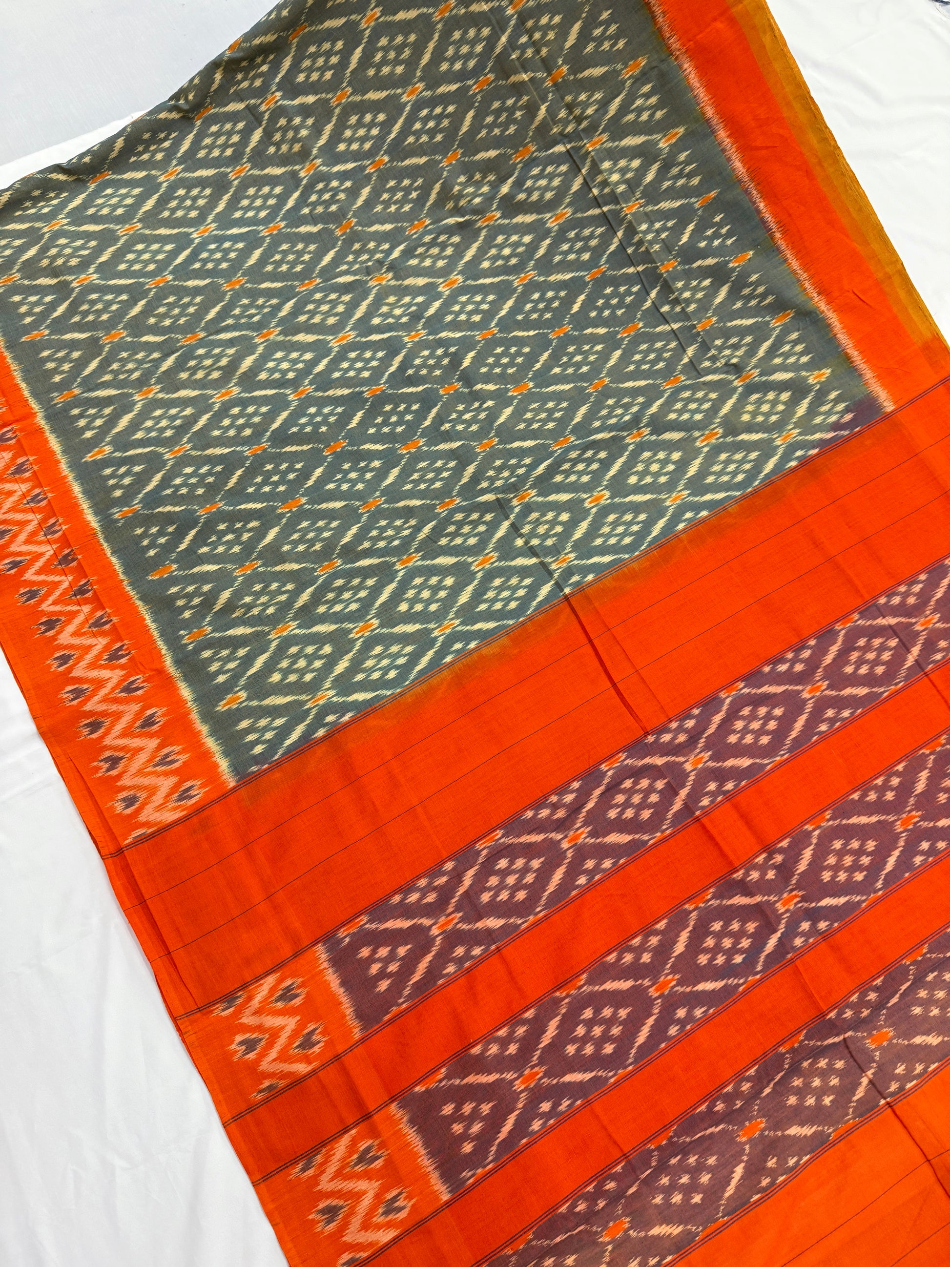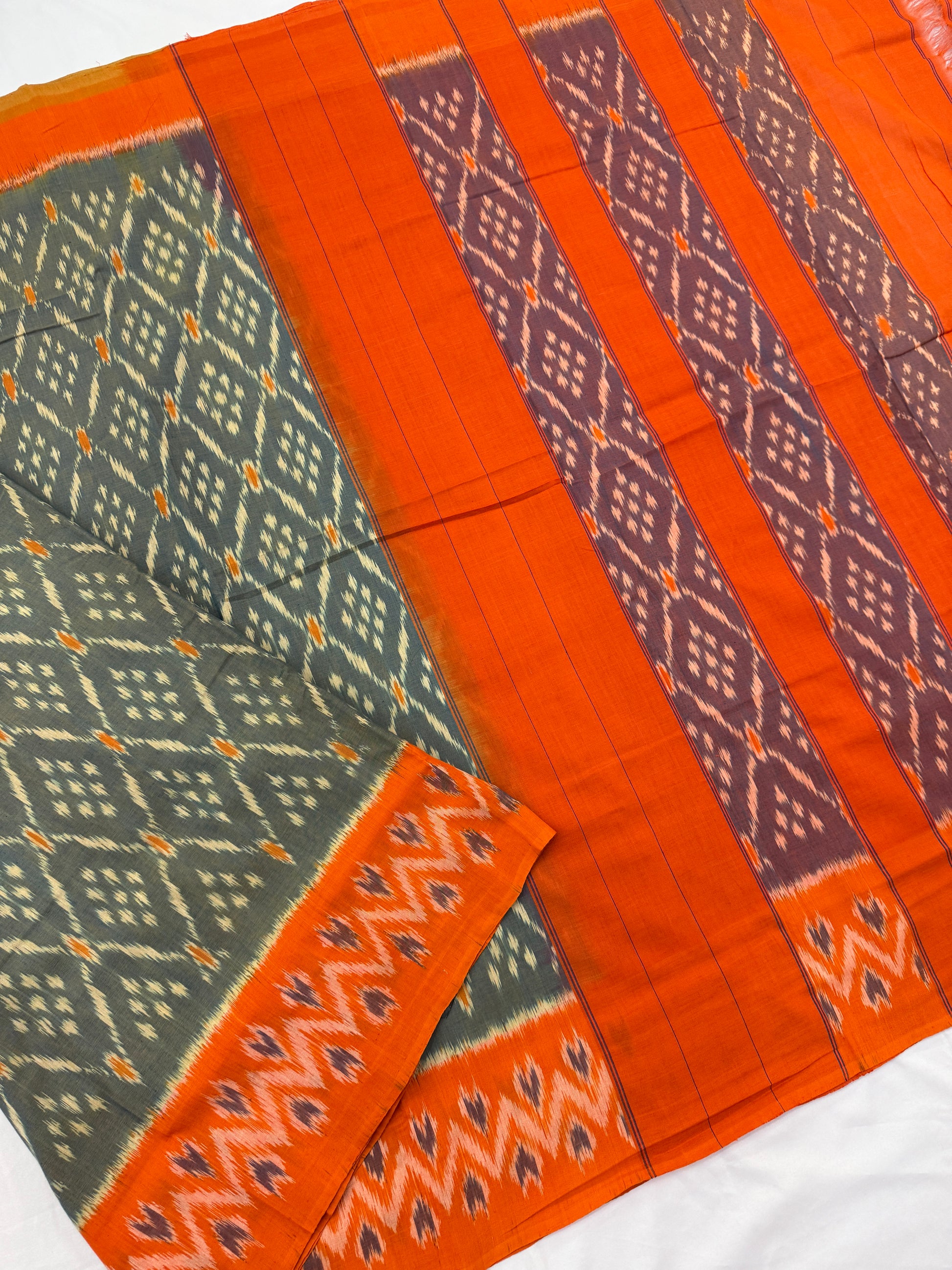 Elegant single Ikat saree handwoven by skilled artisans using traditional techniques. Showcasing distinct patterns and vibrant colors, this saree is a perfect blend of heritage and style.