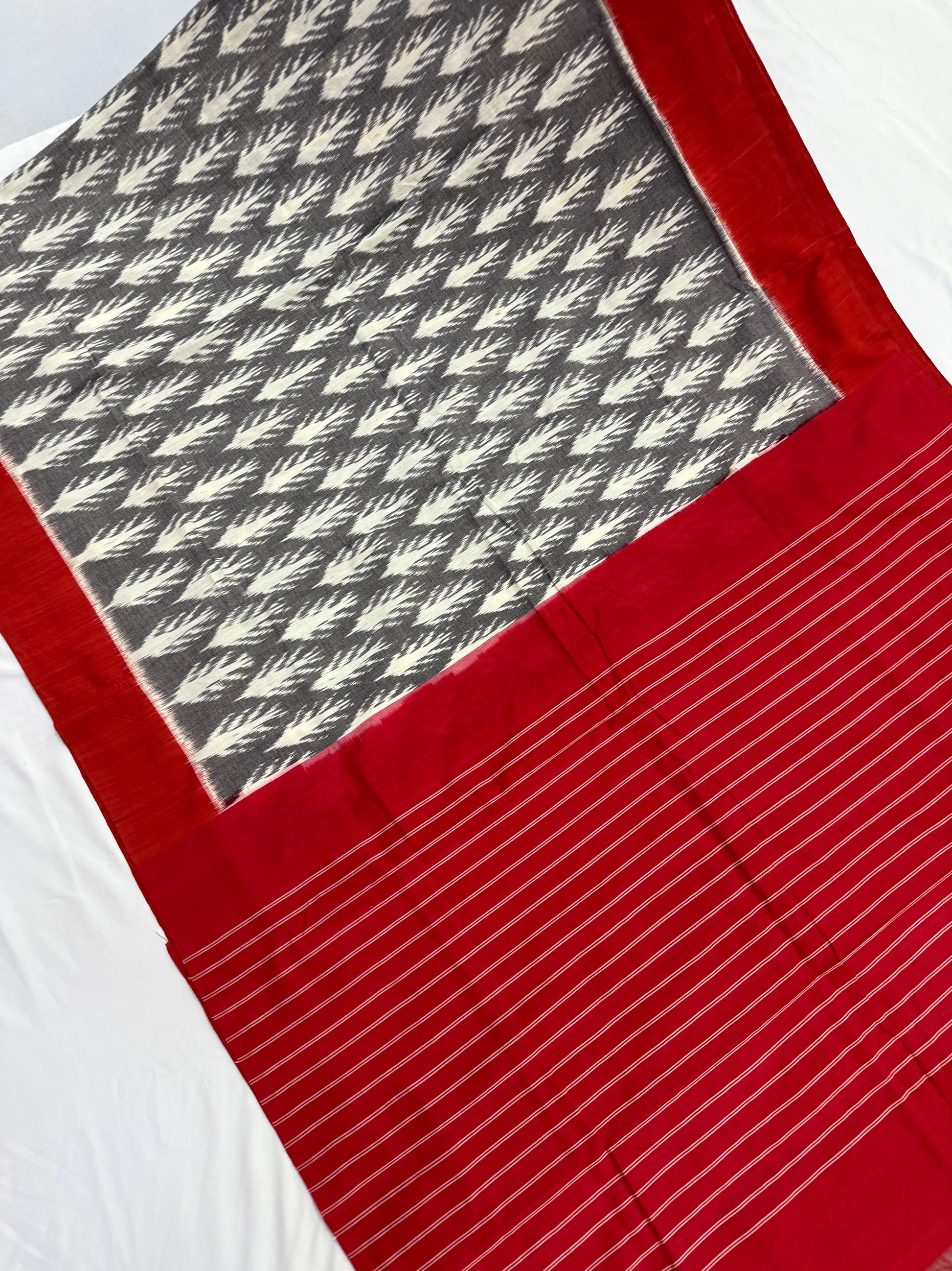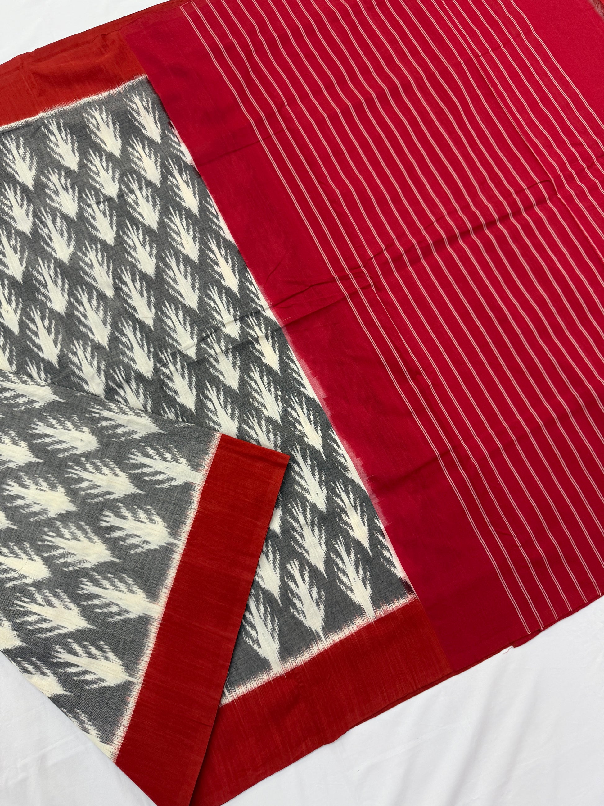 Elegant single Ikat saree handwoven by skilled artisans using traditional techniques. Showcasing distinct patterns and vibrant colors, this saree is a perfect blend of heritage and style.