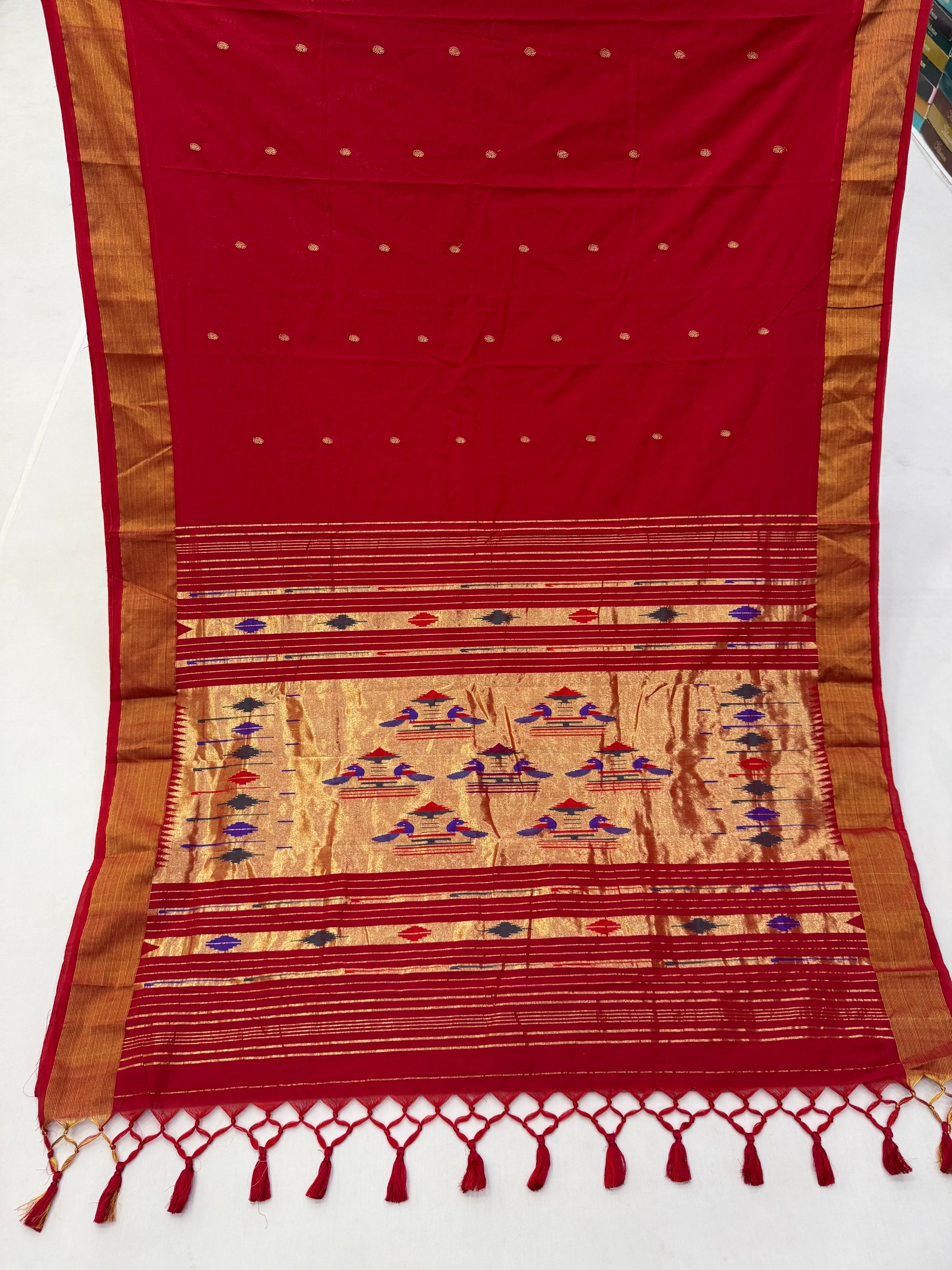 Red Handloom Cotton Paithani Saree