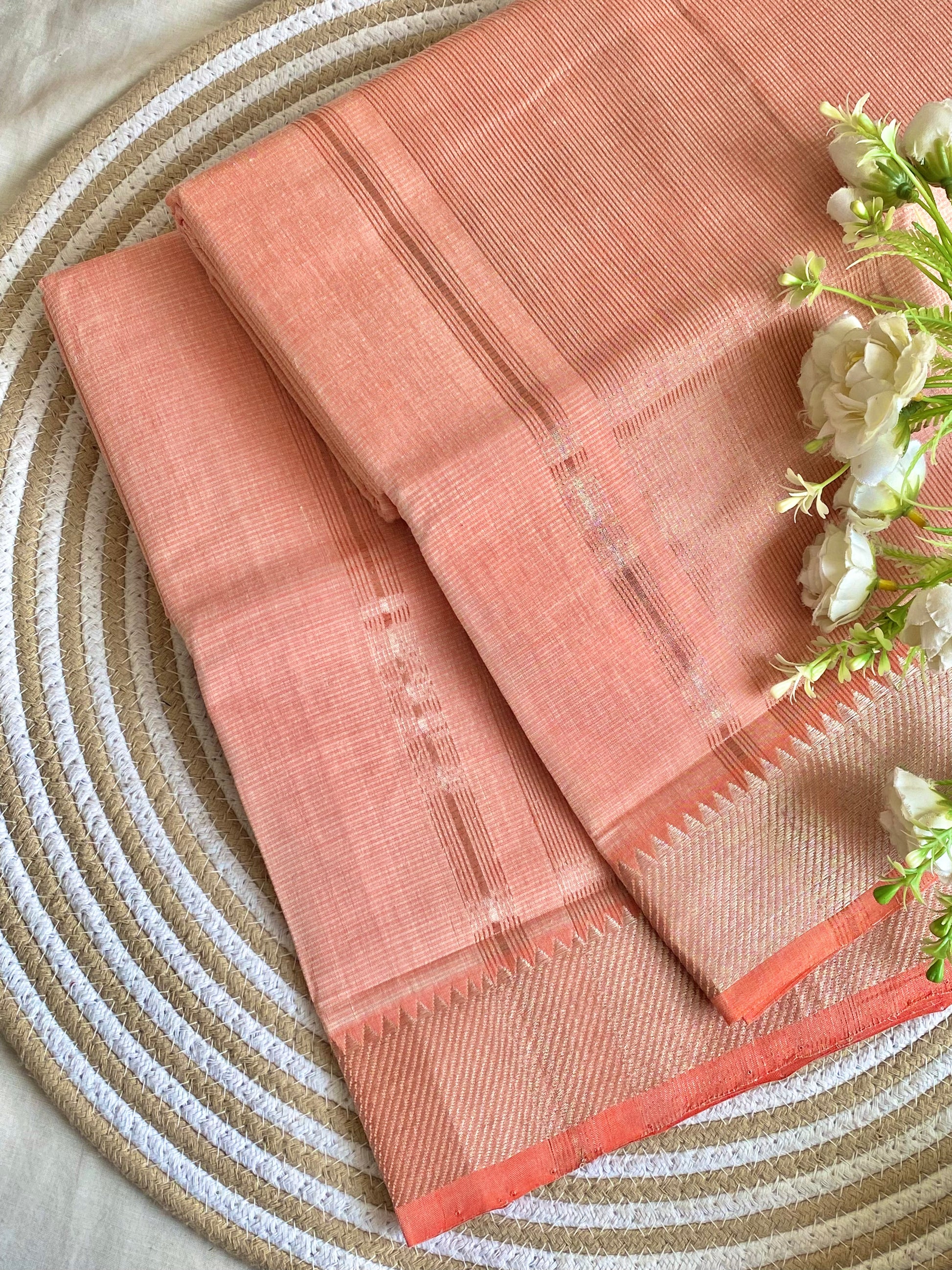 The Silver Border Mangalgiri Cotton Saree is a perfect blend of understated elegance and traditional craftsmanship. Woven in fine Mangalgiri cotton, this saree is lightweight, breathable, and ideal for everyday grace as well as refined festive wear.