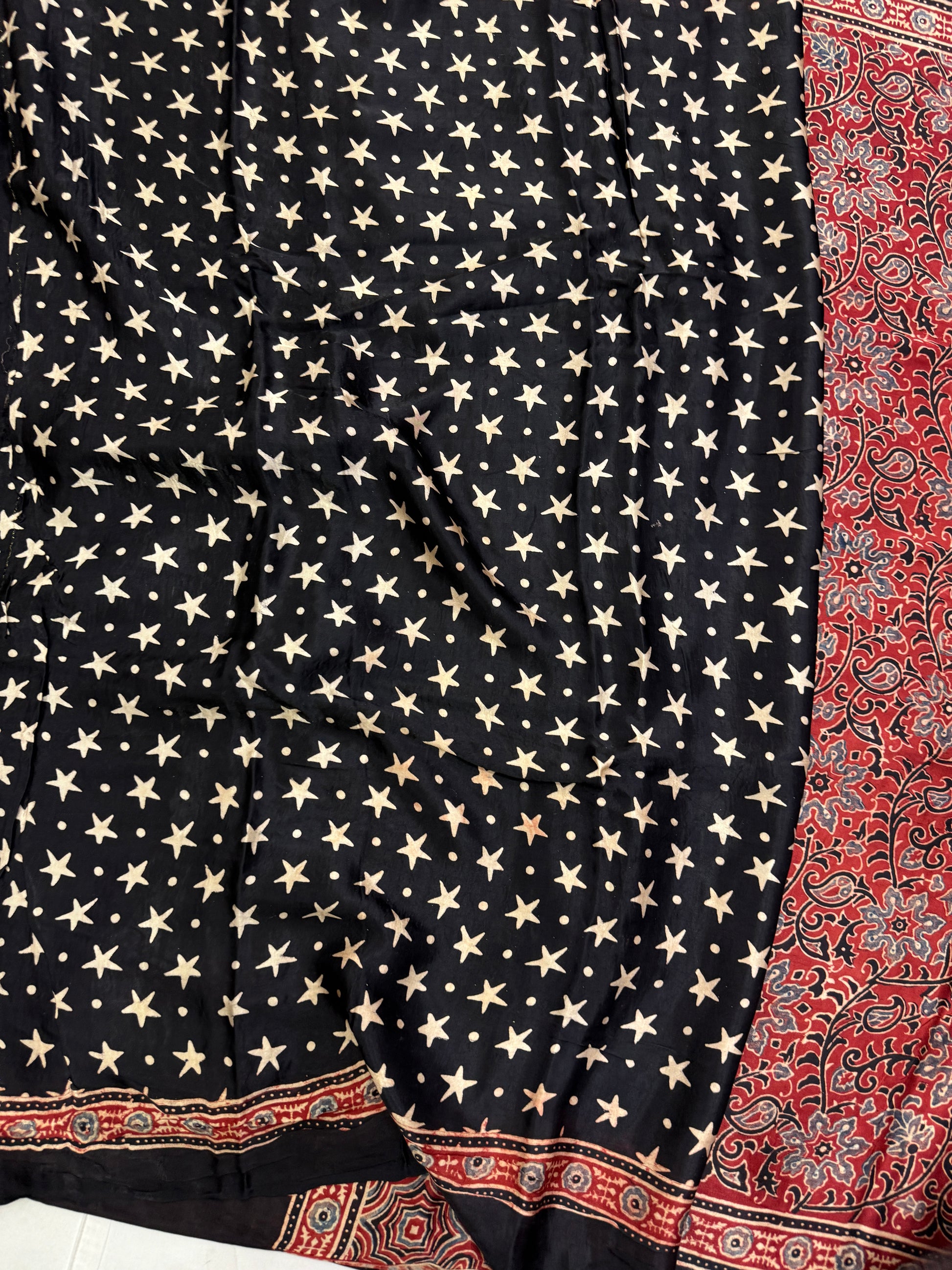 3. It's a hand block print, so, there will be some spill of dye in between sarees, which is not considered as defective or damage.