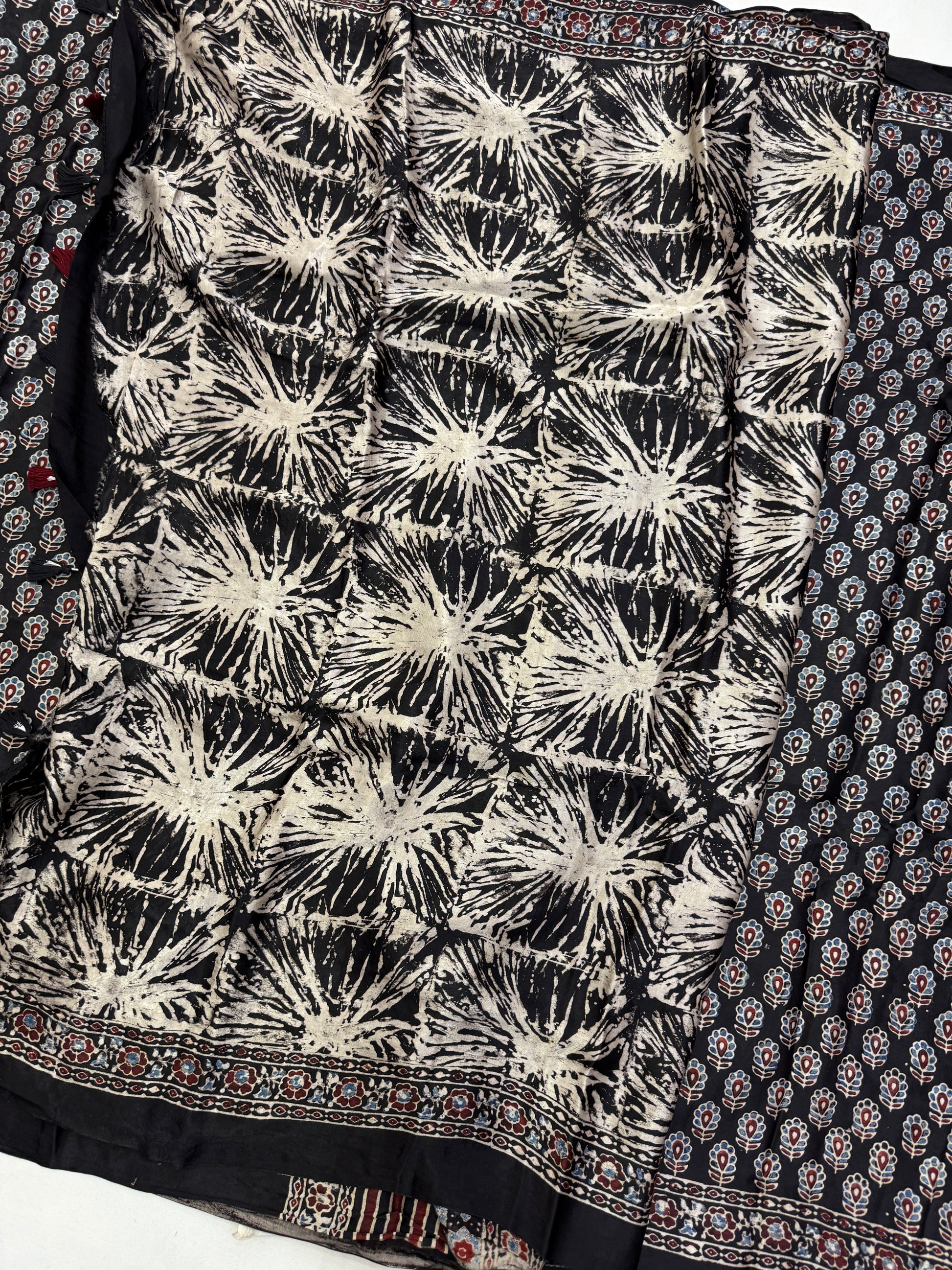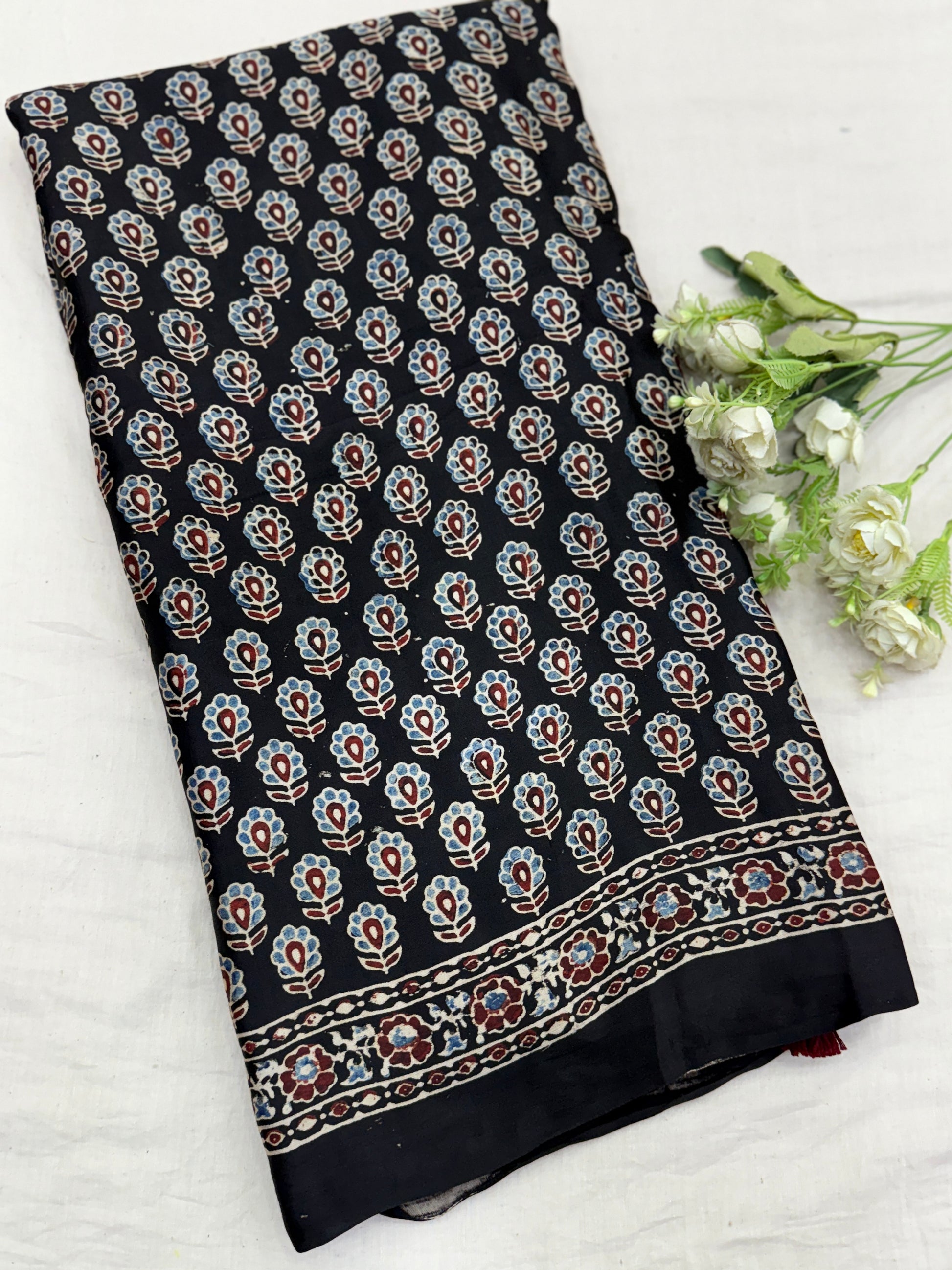 3. It's a hand block print, so, there will be some spill of dye in between sarees, which is not considered as defective or damage.