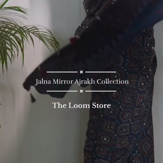 Blue Badam Jalna Mirror Ajrakh Saree (Dispatch Start Jan 15th)