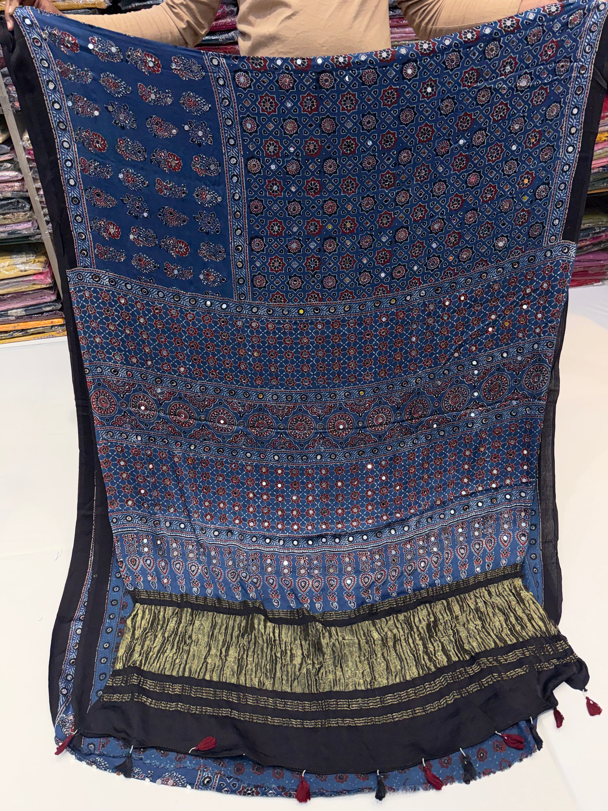 Chandra Blue Ajrakh Mirror Work Saree (Jan 25th, 2026)