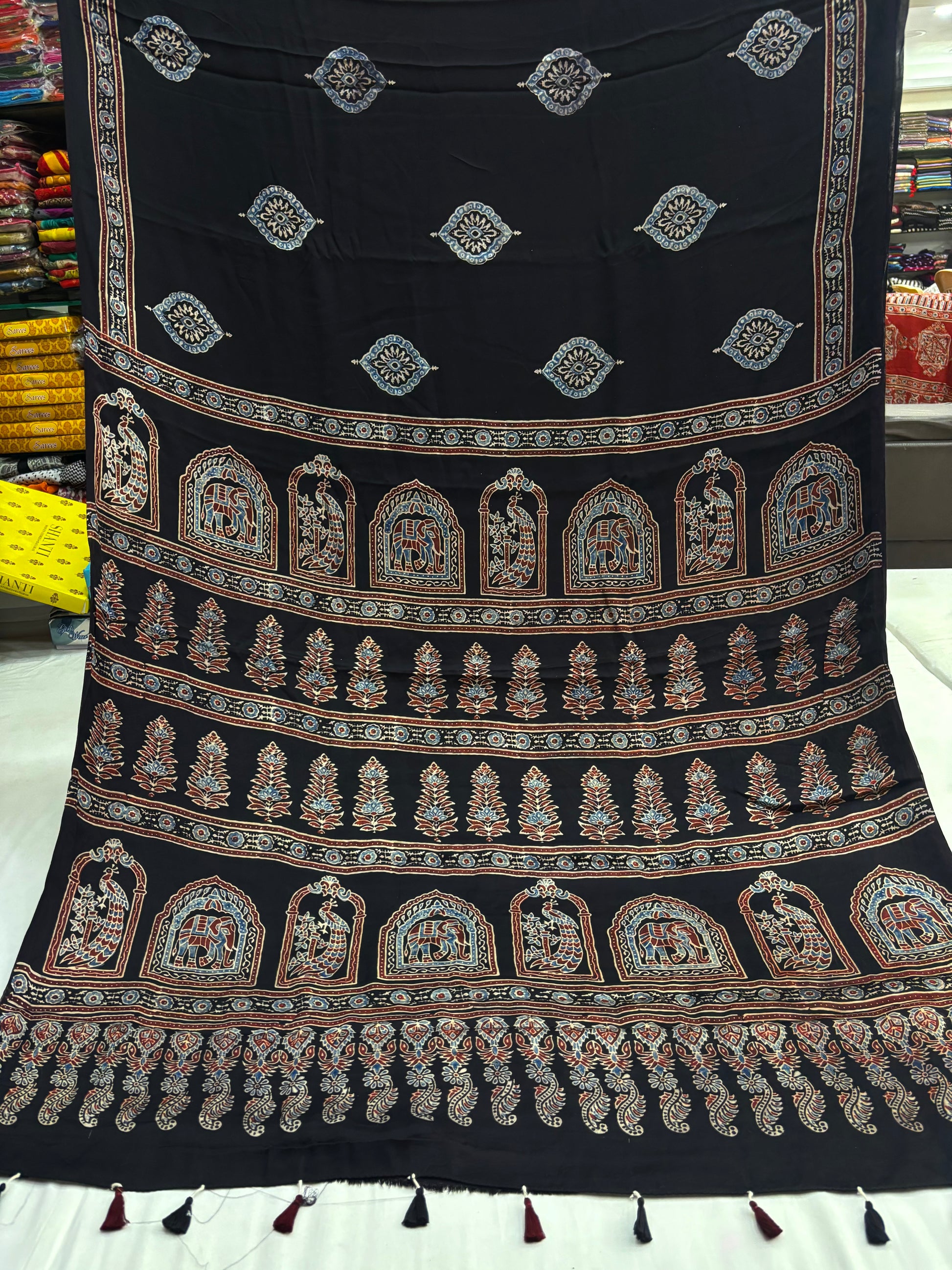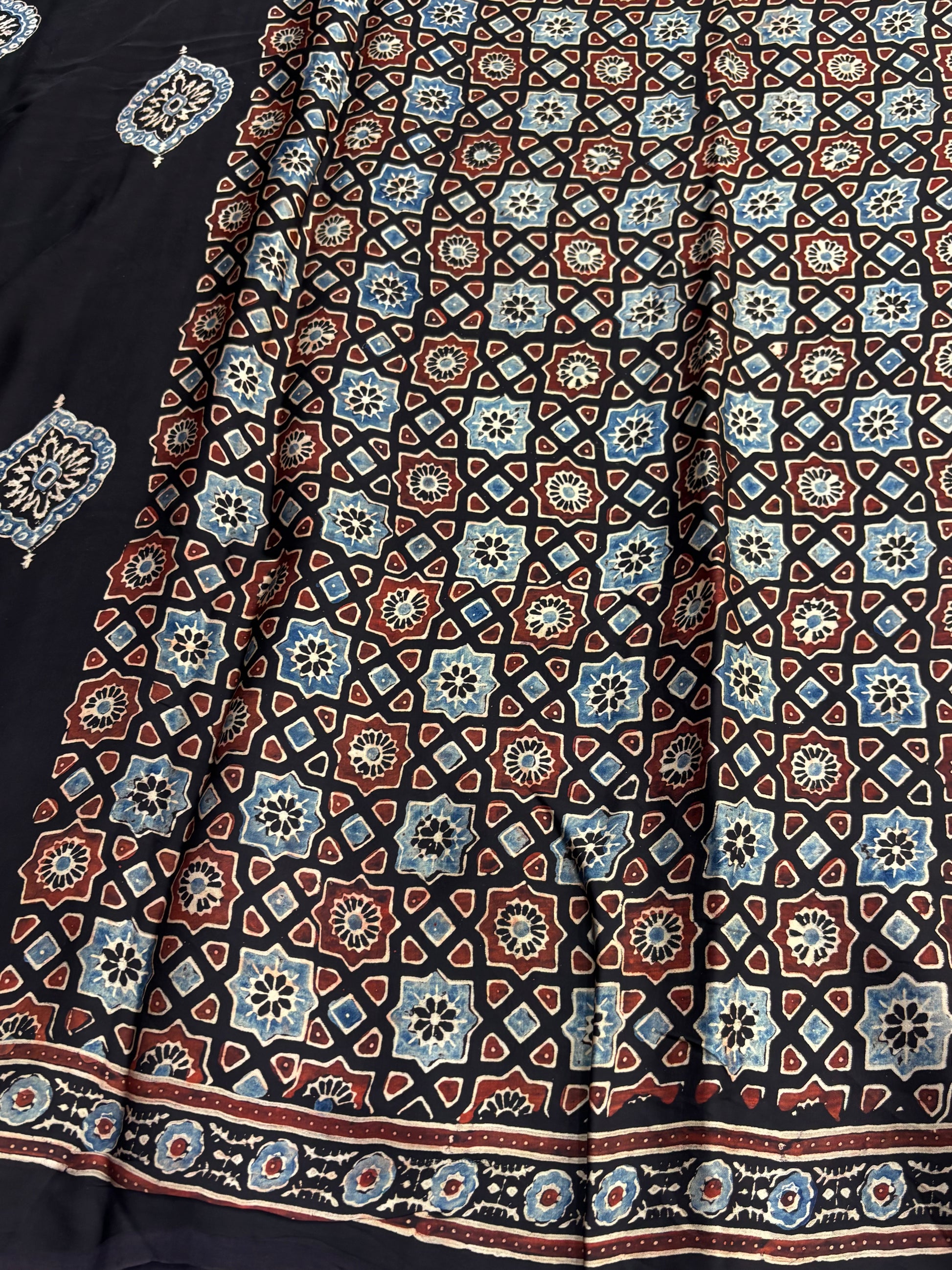 Natural Dyed Ajrakh Modal Silk Saree.