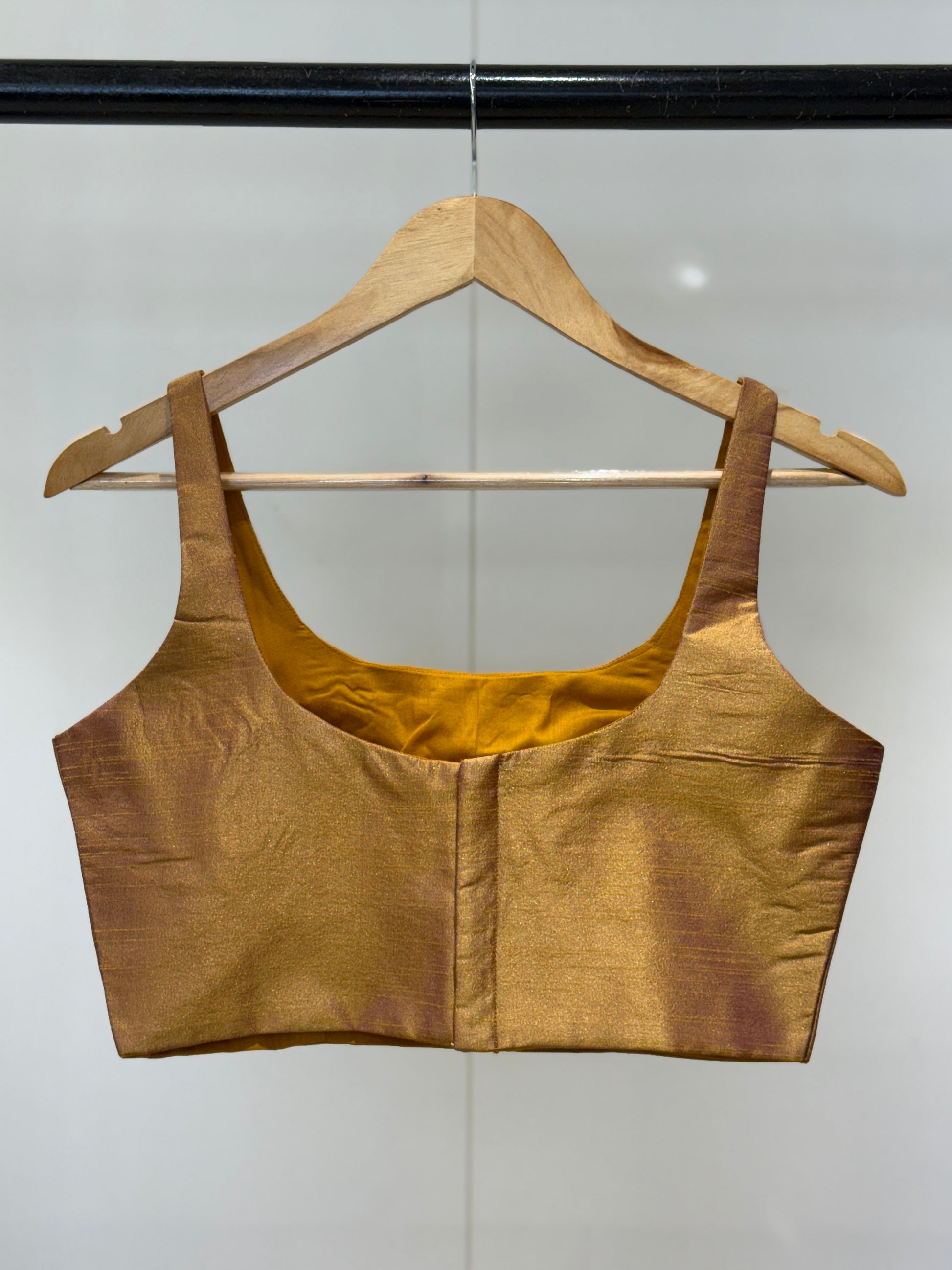 Gold Purple Scoop Neck Raw Silk Blouse