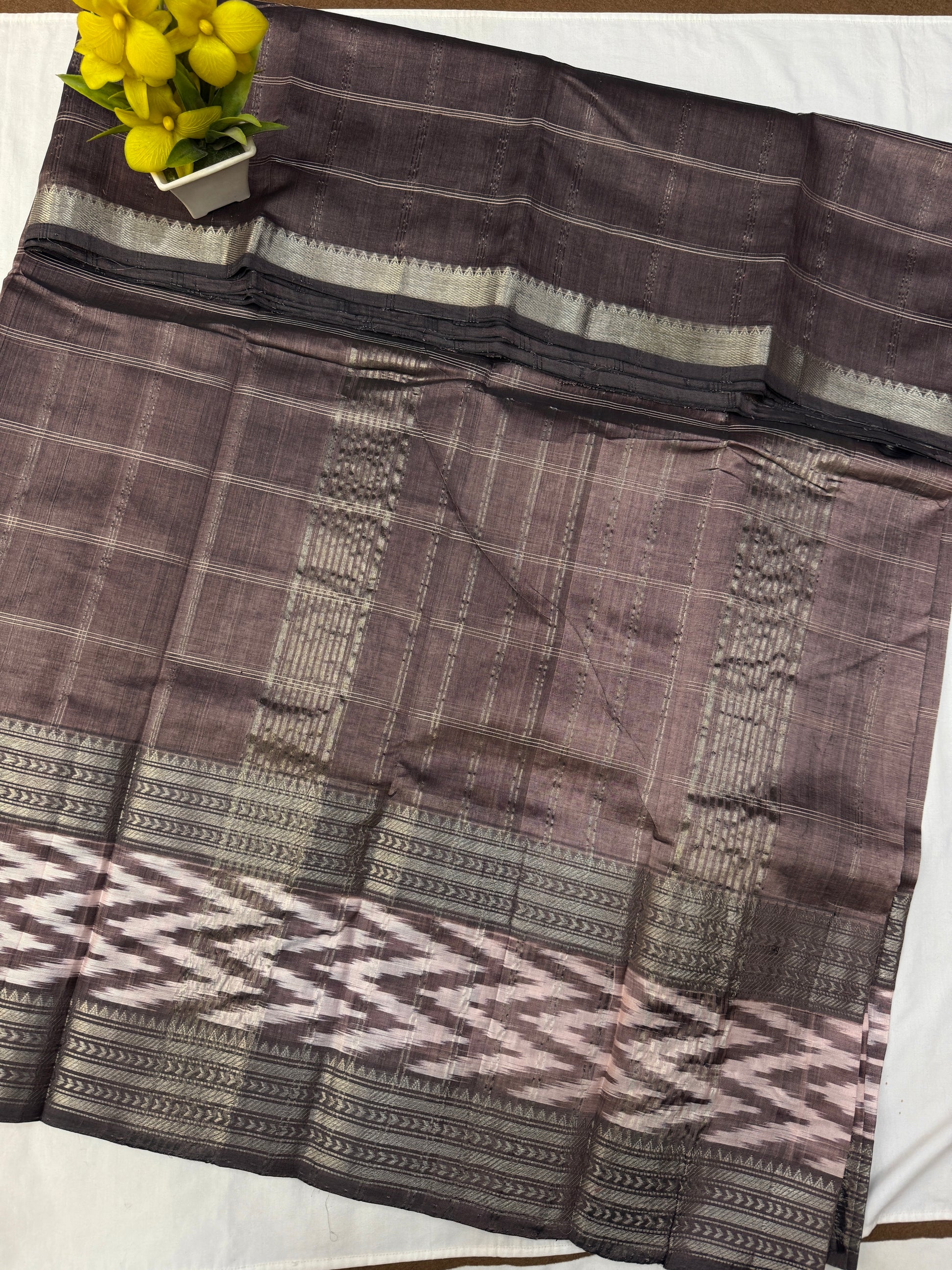 Mist Brown Mangalgiri Ikkat Handloom Sarees