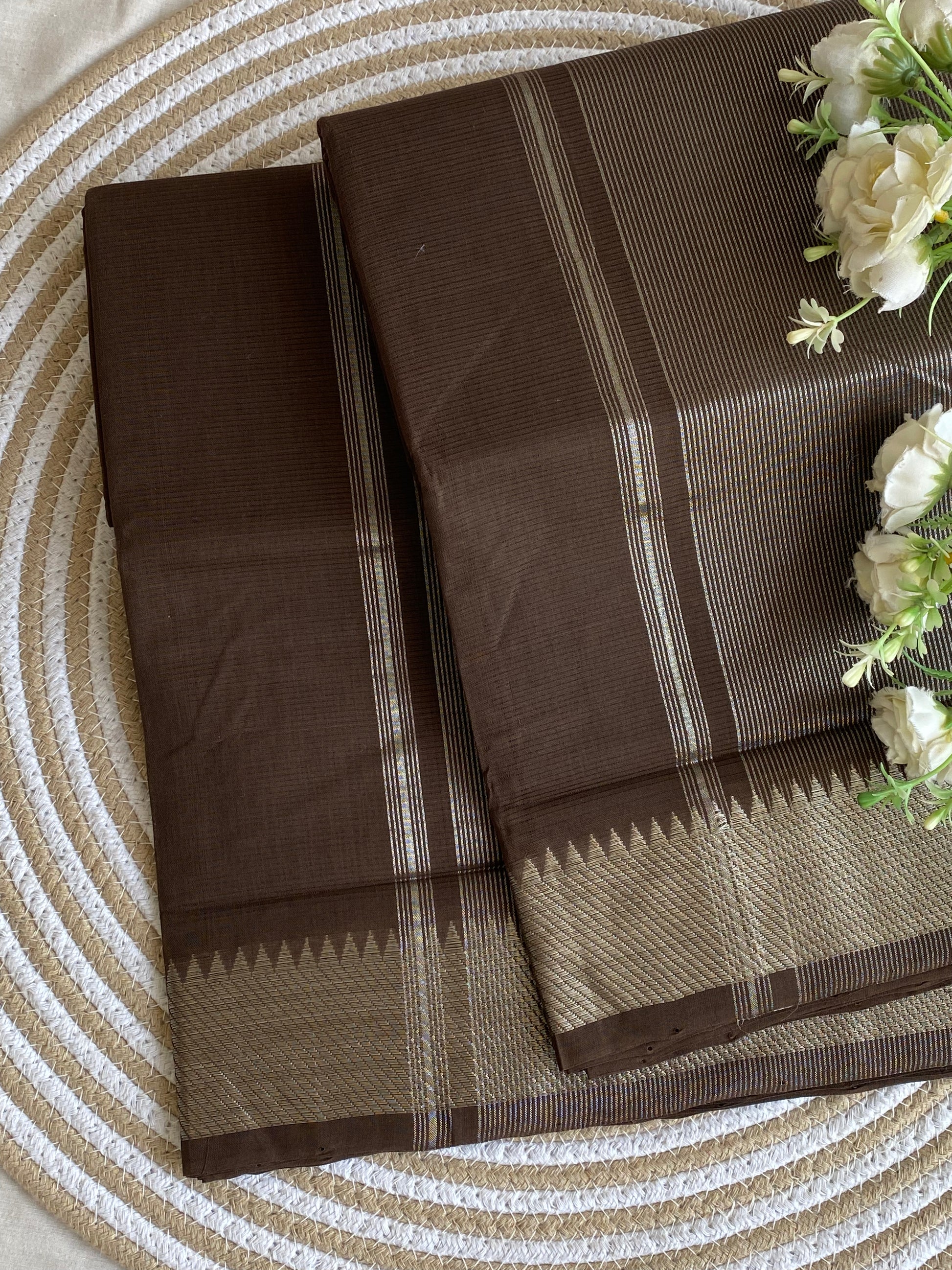 The Silver Border Mangalgiri Cotton Saree is a perfect blend of understated elegance and traditional craftsmanship. Woven in fine Mangalgiri cotton, this saree is lightweight, breathable, and ideal for everyday grace as well as refined festive wear.