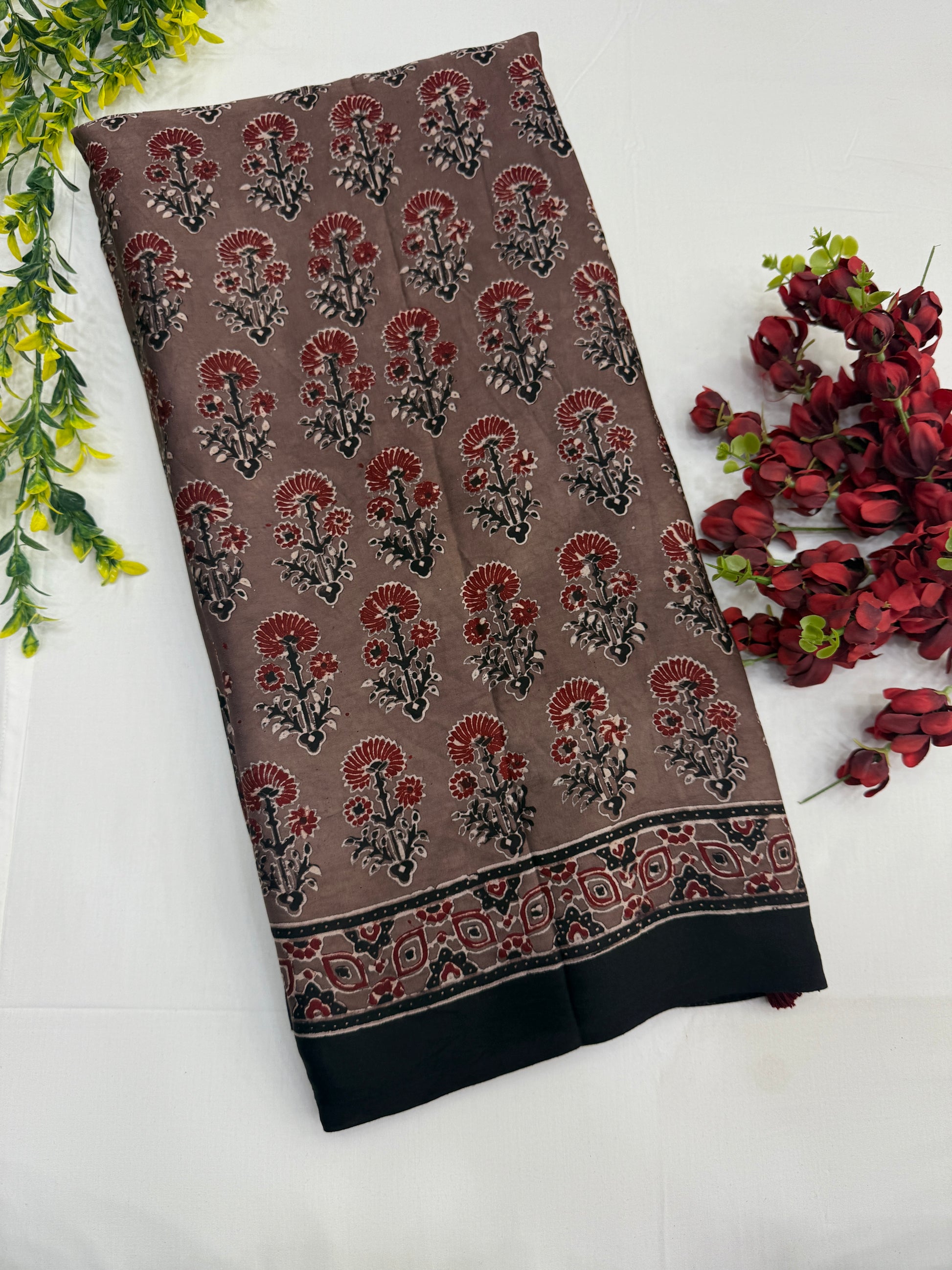Vintage Bloom Ajrakh Modal Silk Saree